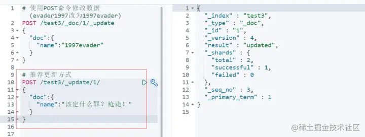 | 3 | POST | localhost:9200/索引名称/类型名称/文档id/_update | 修改文档 |