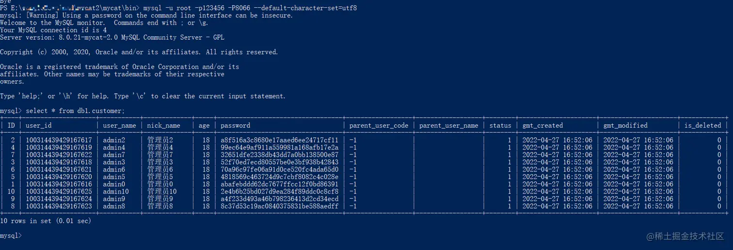 2.1 创建用户 ,用户名为mycat,密码为123456,赋权限