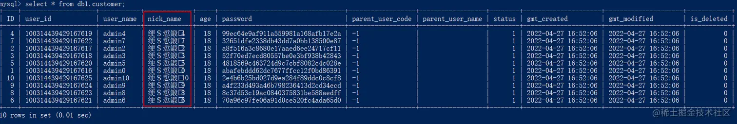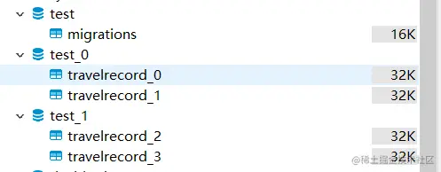 发现数据已经按规则分到表了, 规则是mod_hash(id) 也就是1%4=1落入1表, 依此类推