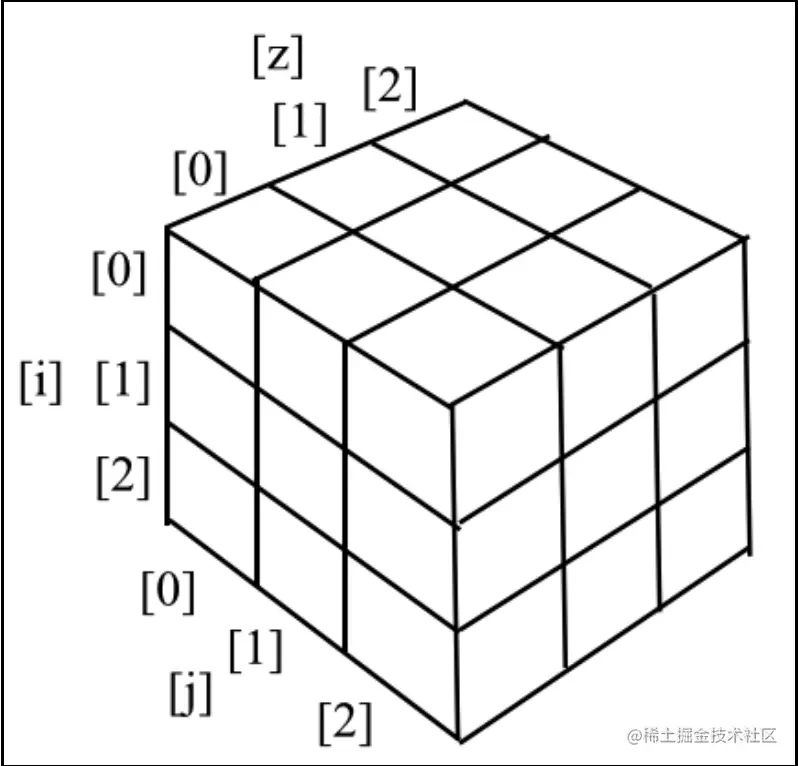用类似的方式,我们构建了一个i(行)、j(列)及 z(深度)的矩阵。