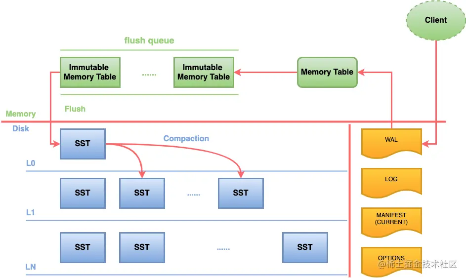 - 一个内存数据结构,名为memtable(后面会被刷盘到SST文件)
