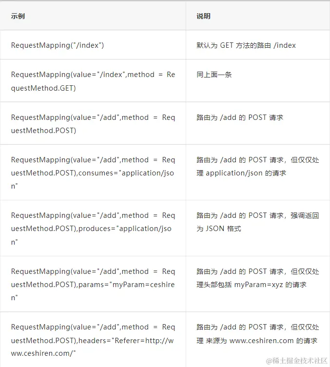 GetMapping 其实就等于将 RequestMapping 注解的 method 属性设置为 GET,PostMapping 其实就等于将 RequestMapping 注解的 method 属性设置为 POST,PutMapping、DeleteMapping 其实就等于将 RequestMapping 注解的 method 属性分别设置为 PUT、DELETE。