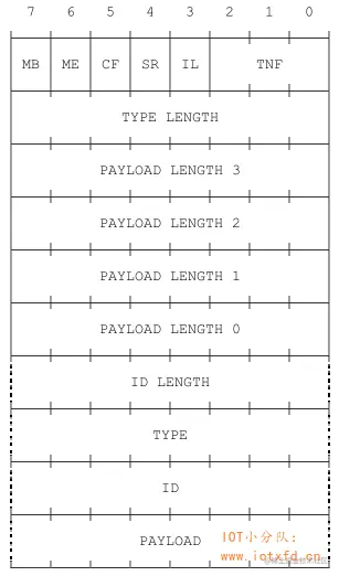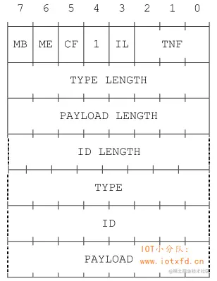 NDEF 记录是具有通用格式的可变长度记录,如下图所示。在下面的章节中,将更详细地描述单个记录字段。