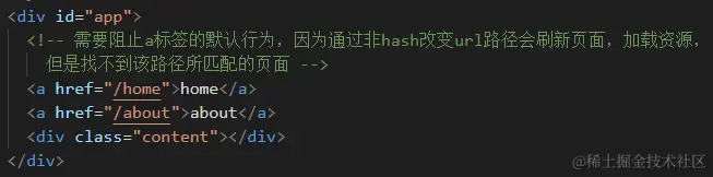 从 www.baidu.com/home 切换到 www.baidu.com/about 不希望从服务器再次请求静态资源,不希望所有东西重新加载一遍,而实希望前端组件切换: