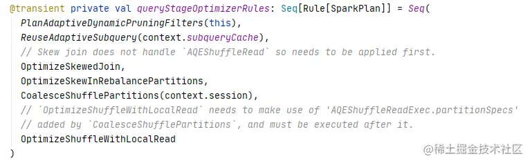 When the AdaptiveSparkPlanExec is executed, it calls the getFinalPhysicalPlan method to start the execution flow. As you might have guessed, same as the non-adaptive query execution discussed above, the AQE also makes recursive function calls to traverse the physical plan for creating stages. The AdaptiveSparkPlanExec defines a private createQueryStages method. This method is called recursively to traverse the plan bottom-up. If the current node is an Exchange node and all of its child stages have been materialised, a new QueryStage, either ShuffleQueryStageExec or BroadcastQueryStageExec (depending on the type of the Exchange node), is created and returned. A list of physical optimizer rules is applied to the new stage before its execution. Those optimizer rules encapsulate the core performance optimising features offered by Spark 3.0. I will cover those rules in the next blog post.