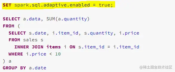 Now let’s move on to the Adaptive Query Execution (AQE). Firstly, let’s rerun the example query we discussed above, but enable the AQE this time.