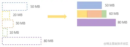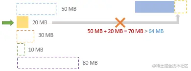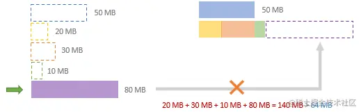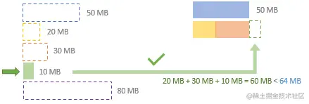 The fourth partition is then added as well and the total size of second, third and fourth partition (60MB) is still not over the target size.