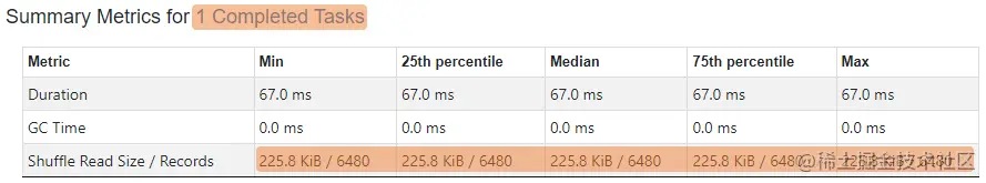 Therefore, the shuffle partition number needs to be dynamically adjusted through the job execution pipeline, according to the data volume at the specific stage at runtime. This is exactly the use scenario where AQE can help. AQE splits a Spark Job into multiple query stages and re-optimise the query plan of downstream query stages based on the runtime statistics collected from the completed upstream query stages. The CoalesceShufflePartitoins rule is the AQE optimizer rule created for dynamically configuring the shuffle partition number. This rule coalesces contiguous shuffle partitions according to a target size of ******the output partitions. For the example used above, if we enable AQE and rerun the same query, we can see there is only one task created this moment. As the entire dataset used in this example is very small, only one partition is required.