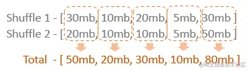 When the CoalesceShufflePartitions rule is applied, it gets the size statistics of all shuffle partitions from the MapOutputStatistics collected at the map stage. In our example, we have two shuffles, each of which has five shuffle partitions: