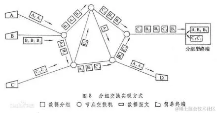 封包交换的基本原则是==最佳化的使用连线负载能力,最小化回应时间,以及增进通讯的健全性。==