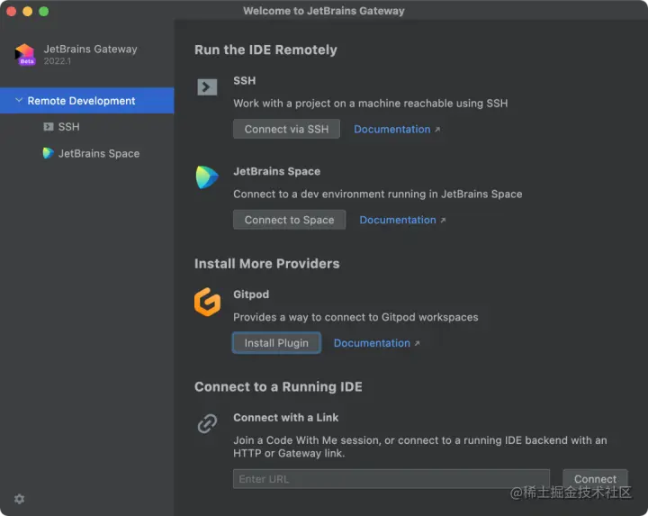 JetBrains Gateway 是 JetBrains 的远程开发解决方案,于 2021 年 11 月 发布,是一款独立应用。它可通过 SSH 连接到远程服务器,下载并安装 IDE 作为后端服务,并打开托管在远程机器上的项目。