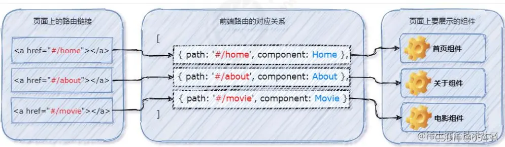 ④ 前端路由把当前 Hash 地址对应的组件渲染都浏览器中