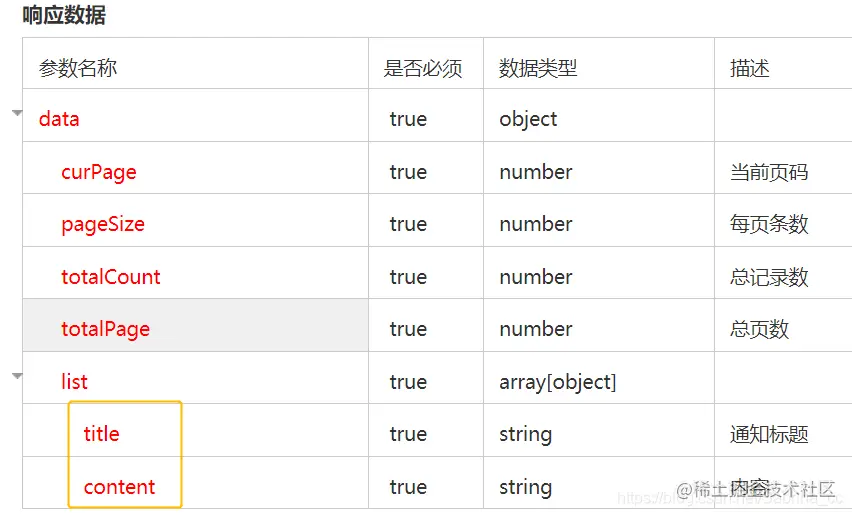 对照接口可以看到,我们请求是POST方法,请求数据包含 pageNum和pageSize,而获取到的数据很多,我们可以只使用title content即可。