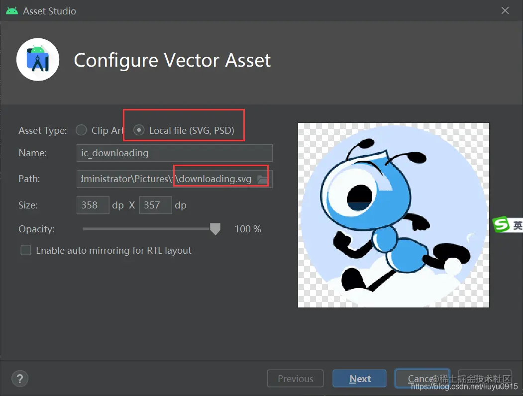 转换一个下所有 SVG 文件为 Vector Drawable 文件。
