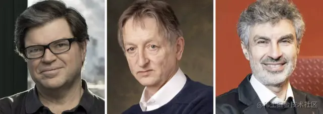 (从左到右依次为Yann LeCun、Geoffrey Hinton和Yoshua Bengio)