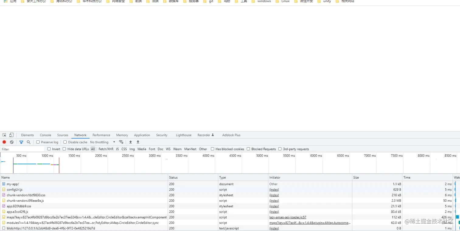 为了解决上面的问题我们可以把publicPath设置成相对路径./😊这样我们就不需要去管nginx部署在哪个目录下啦.👈。但是当我以为我要有所突破的时候测试部署的时候出现了这个问题控制台没有报错,页面。
