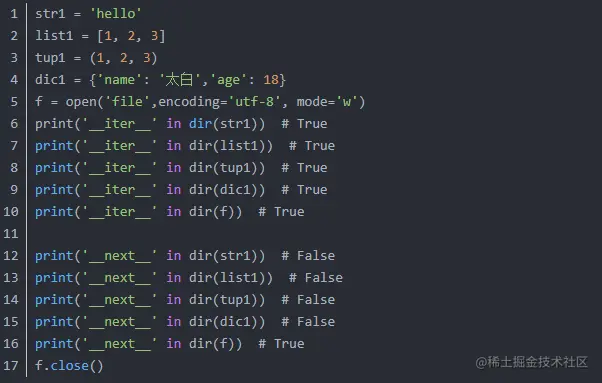 可以看出只有文件对象是迭代器,其他对象均是可迭代对象,到这里再去理解前面的概念就容易一点了。