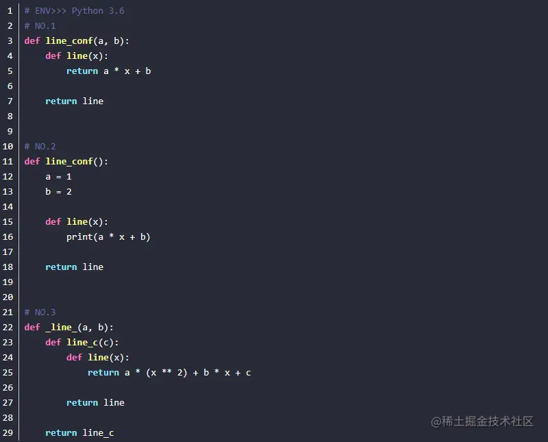 往上走一层就找到了来自主函数line_conf传递的a, b,若往外直至全局作用域都查找不到的话代码会抛异常。