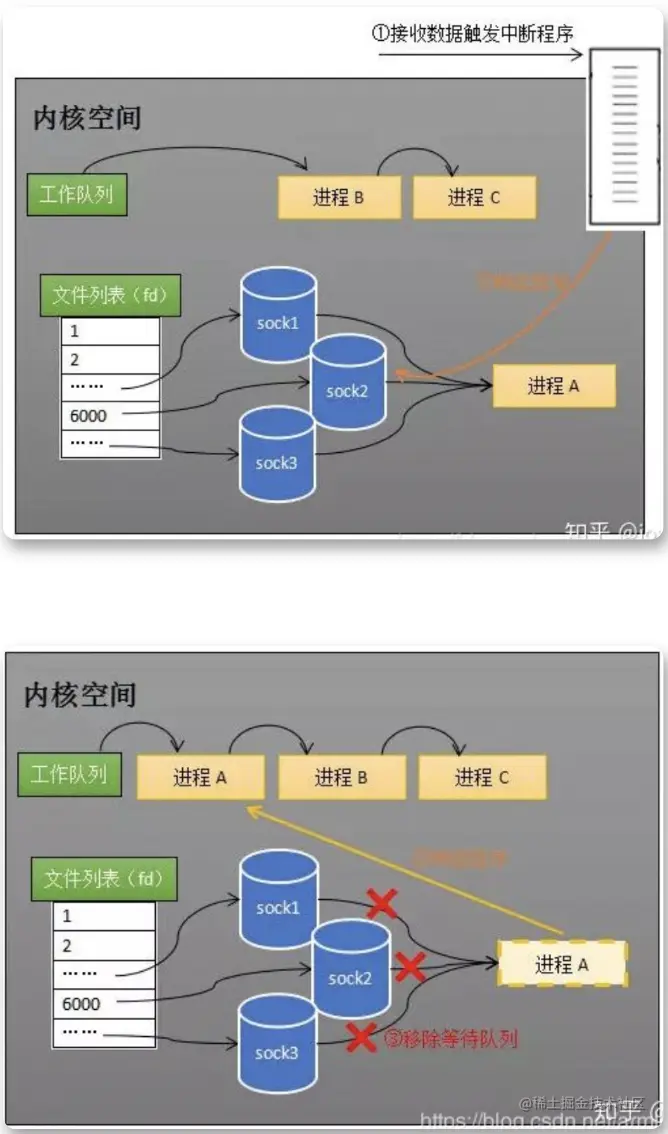 进程被唤醒后,只能知道有 socket 接收到了数据,无法知道具体是哪一个 socket 接收到了数据,所以需要用户进程进行遍历,才能知道具体是哪个 socket 接收到了数据。