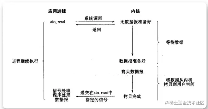 比如有一个读取数据的请求,应用只需要向内核发送一个 read,告诉内核它要读取数据后即刻返回。