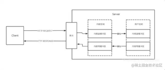 一般情况下,一次网络数据的传输会从客户端发送给服务端,由服务端网卡接受,转交给内存,最后由 cpu 执行相应的业务操作