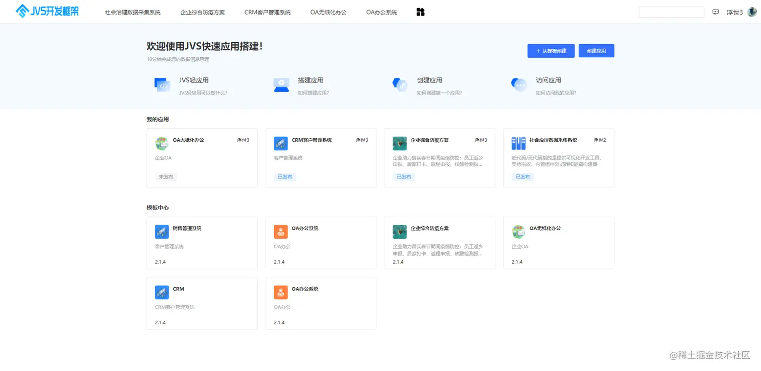 JVS将预植一些基础通用的应用,这样开发团队通过简单的修改需求则可以快进入交付状态