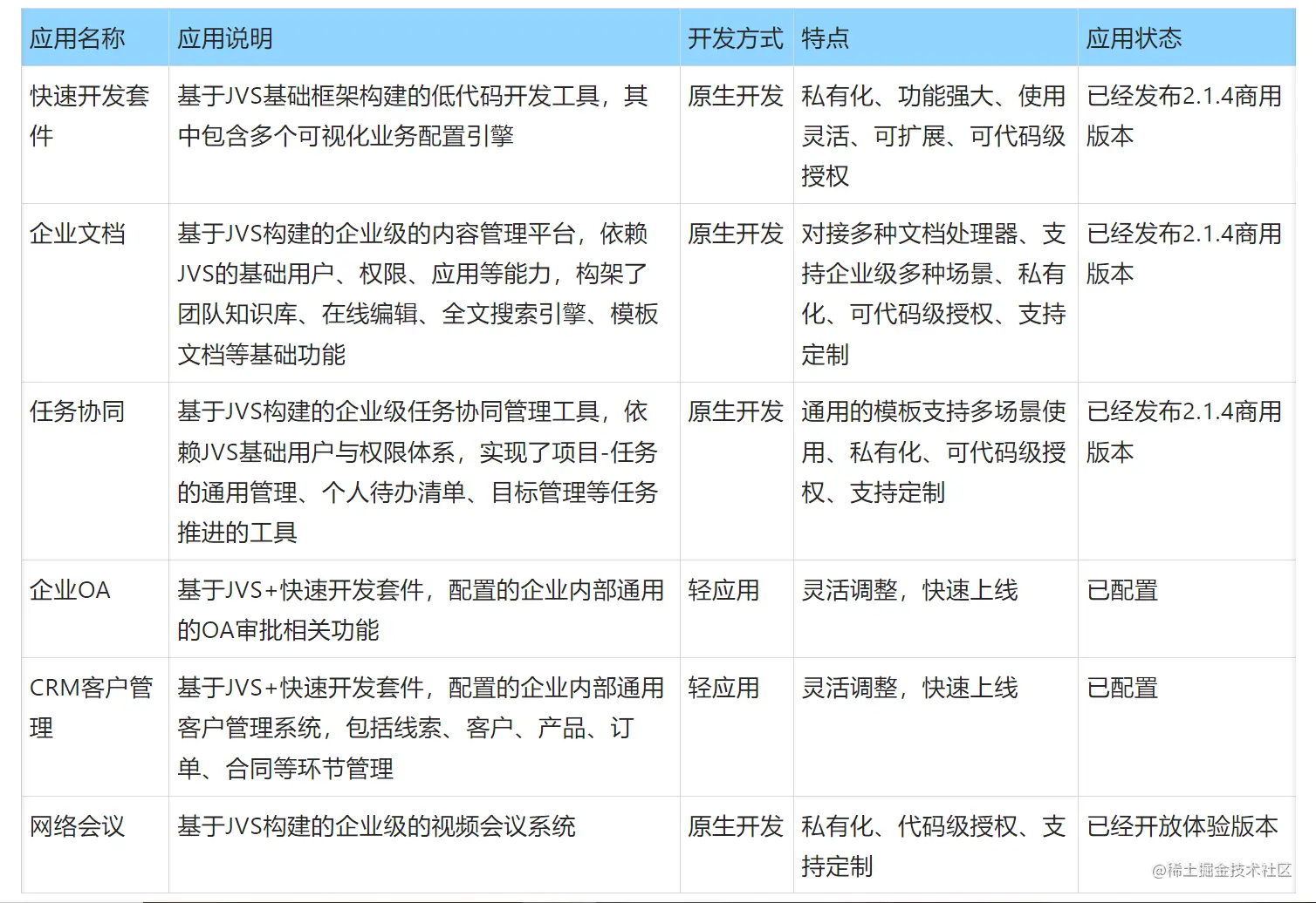 - 原生应用,基于JVS基础框架,通过正常的编码、发布的应用,定义为原生应用。