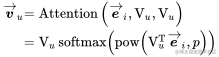 其中pow定义每个元素的指数级操作,是一个可调节的参数来调整注意力分布。当接近0,每一个兴趣胶囊都得到相同的关注。当大于1时,随着的增加,具有较大值的点积将获得越来越多的权重。考虑极限情况,当趋近于无穷大时,注意机制就变成了一种硬注意,选关注最大的值而忽略其他值。