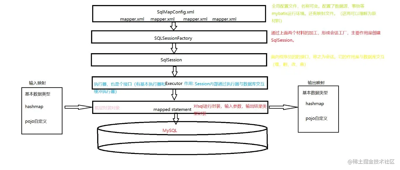 - SqlMapConfig.xml&&mapper.xml:这是Mybatis的全局配置文件,配置了Mybatis的运行环境等信息。mapper.xml文件是sql映射文件,文件中配置了操作数据库的sql语句。此文件需要在SqlMapConfig.xml中加载才可被调用。
