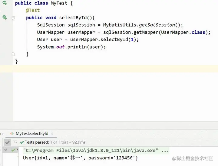 User user = (User) session.selectOne("com.evader.UserMapper.selectById", 1);