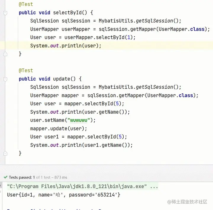 这个语句的id是selectById,可以理解为是接口中selectById方法的具体实现,这个方法的参数是一个int/Integet,返回值是一个User对象。 它对应的接口是这样的: