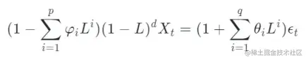 d 为差分的阶数,L 为滞后算子: