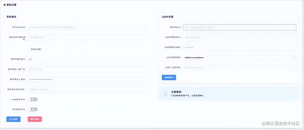 设置消息推送相关信息 包括钉钉机器人/email,设置LDAP相关信息,全局配置信息,全局配置开关