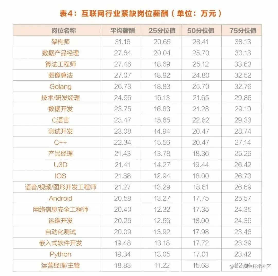 除了这些新兴职业,在传统互联网里,也存在着一些紧缺岗位,且从平均薪酬上看,优势还是非常明显的。