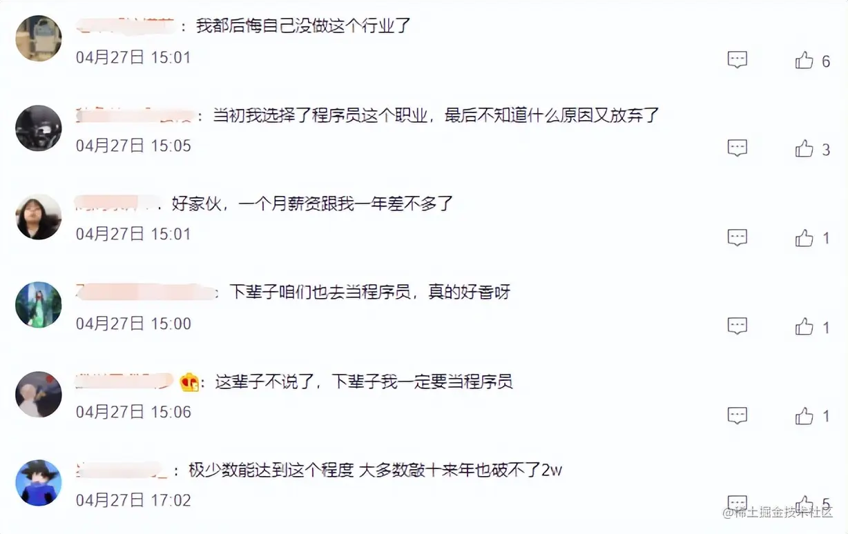 还有一些在职场上已经打拼了许多年的程序员,随着年龄的增长,身心疲惫精力不足各种疾病开始逐渐凸显,他们开始更多的去考虑健康生活、自身发展和兼顾家庭是否能够平衡的问题,这也是到后来大部分人会选择离开一线城市回到家乡或者去一个二三线城市定居的原因。