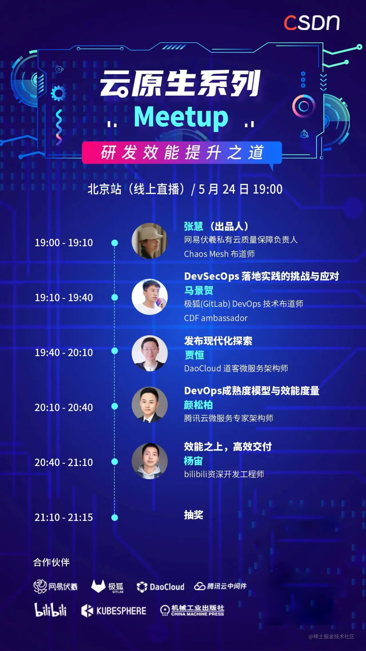 伴随着容器、Kubernetes 及微服务等技术热度的持续攀升,云原生正以不可撼动之势,剑指云计算的下一个十年。 2022 年 5 月 24 日,「DaoCloud 道客」微服务架构师 - 贾恒做客 CSDN 线上举办的云原生 DevOps 之道 Meetup,分享《 发布现代化探索》,与 4 位专家共话云原生时代的研发效能提升之道。 发布现代化简单来说,就是云原生微服务体系下的一种发布,基于一种为云原生应用程序实施持续部署的方法 - GitOps,通过 ArgoCD、Flux 等云原生持续部署工具的使用,加上微服务体系的配合及相应的数据隔离,完成应用现代化发布的一种解决方案,助力研发提升效能。 赶紧参会,来了解各大领先企业的云原生落地实践,与众多云原生领域的开源技术专家进行现场对话,洞悉云原生的先机。