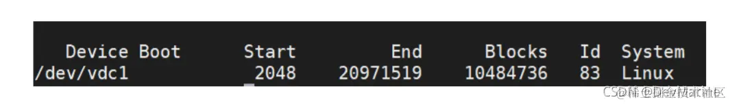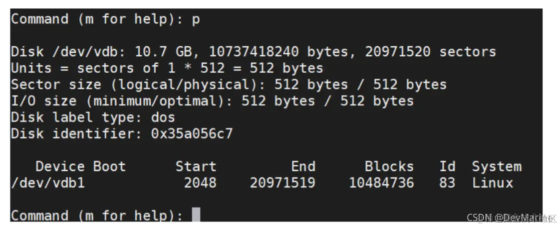表示新建分区“/dev/vdb1”的详细信息。