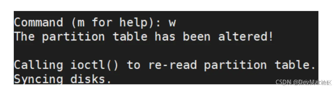 步骤 9 输入“w”,按“Enter”,将分区结果写入分区表中。