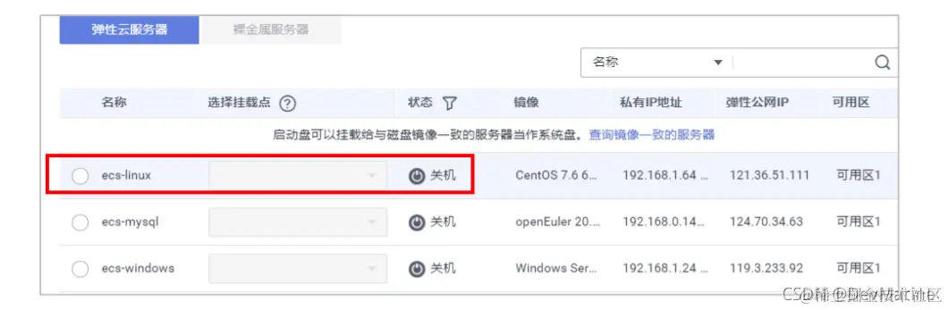 步骤 2 参考 2.1.4 购买非共享云硬盘(如 volume-linuxadd),并将改数据盘至挂载云服务器 (在购买数据盘是注意可用区需要 linux 云服务器在同一可用区)。