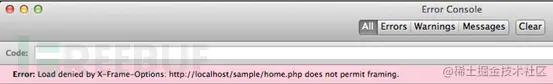 在Firefox中加载iframe.html页面,下面是控制台提示的错误信息