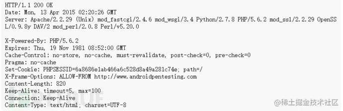 以下为抓包获取的HTTP头信息