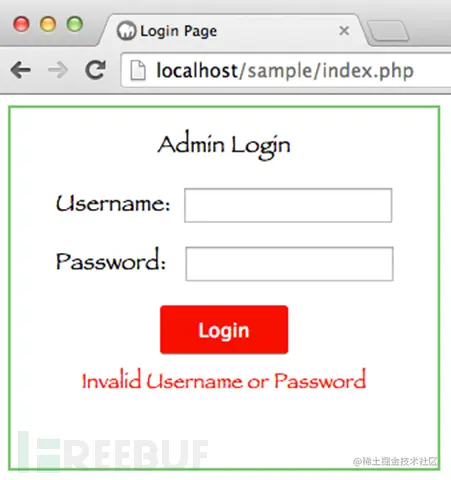 如果输入的用户名密码不匹配的话,会返回以下页面,当然完成这一步骤是需要执行数据库查询操作的。