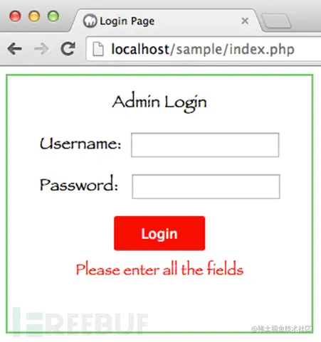 用户输入字段不能为空,完成这个功能只需使用PHP的empty()函数。因此用户如果不输入点东西点击登录,会返回下面这个页面