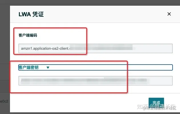 | LWA客户端秘钥 | clientSecret | LWA client secret | 在注册应用程序时生成 |