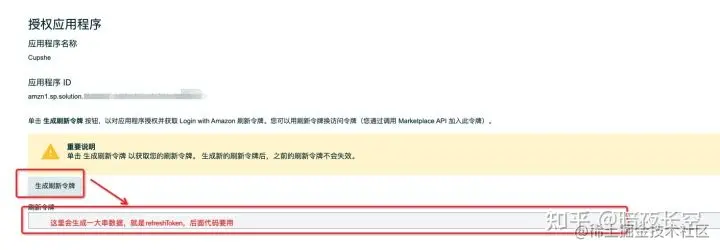 | LWA客户端令牌 | refreshToken | LWA refresh token | 在给应用程序授权时生成 |