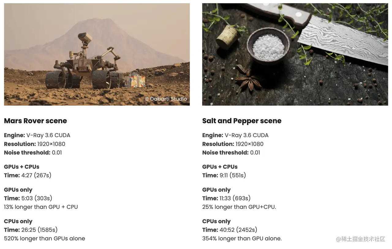 基于硬件的混合渲染,指的就是CPU和GPU可以同时参与渲染任务的一种混合渲染模式。这里我们参考V-ray的混合渲染模式。首先要说明的是,单纯的GPU渲染有两个问题:1)很难进行Debug:GPU的程序如果出错基本都会返回一个kernel dump(就是内核挂掉了),不会有相应的报错信息提示。2)无法充分利用CPU的性能:之前的渲染工作基本都是交给GPU来进行计算的,CPU把任务提交给GPU之后,CPU本身其实会处于一段时间的空闲状态,等于白白浪费了计算能力。为了解决这两个问题,V-ray提出的混合渲染就是可以让CUDA同时运行在CPU和GPU上,这样可以充分利用CPU提交任务给GPU之后,本身的空闲时间,同样可以进行渲染的计算工作。经过测试,V-ray的混合渲染比单纯的GPU渲染,完成时间平均缩短了约20%左右。这里需要强调下,这种CPU和GPU同时进行的混合渲染模式,在WebGL的标准下是无法实现的,因为它采用的是全局状态机模式,CPU必须要等待GPU的运行结果,才能继续做下一个任务,简单说就是同步机制。而WebGPU采用了现代图形API的方法,完全遵循异步形式,这样才具备实现这种混合渲染的基础能力。