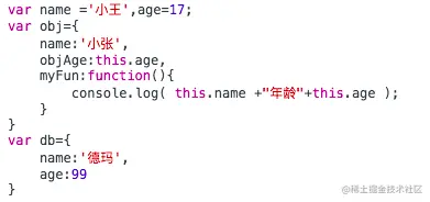obj.myFun.bind(db)(); // 德玛年龄 99