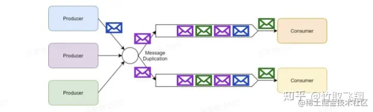 - 发布/订阅模式:单个消息可以被多个订阅者并发的获取和处理。