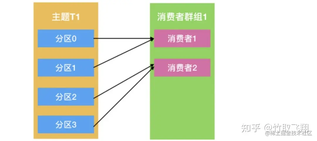 - 消费者群组(Consumer Group) :消费者群组指的就是由一个或多个消费者组成的群体。