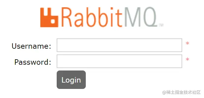 在浏览器访问 http://ip:15672/ ,会出现以下界面,记得要开放15672端口,或者关闭防火墙